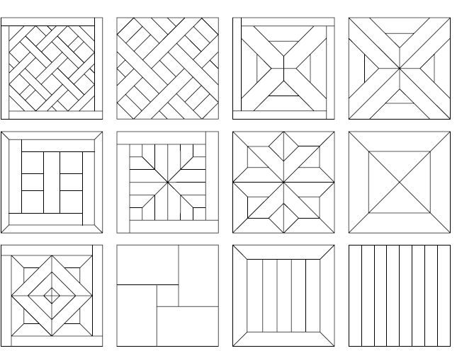 Motifs : chevron, bâton rompu, panneaux (Versailles, Chantilly, etc.).