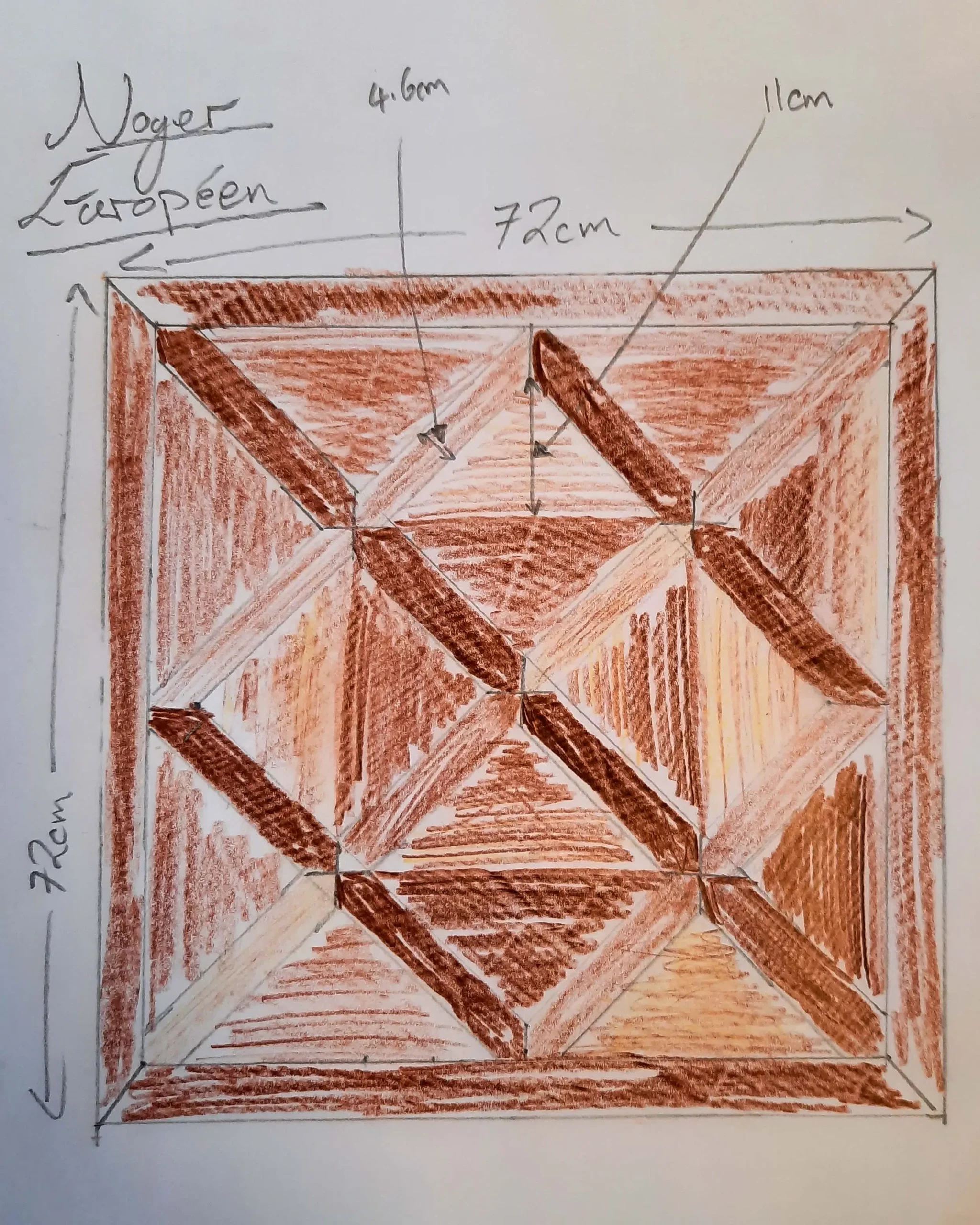 Un parquet sur-mesure peut être réalisé à partir d’un simple croquis. Un exemple conçu en 3 semaines en plusieurs étapes :