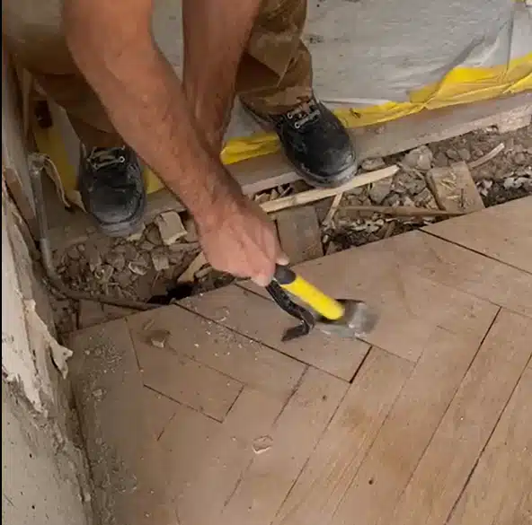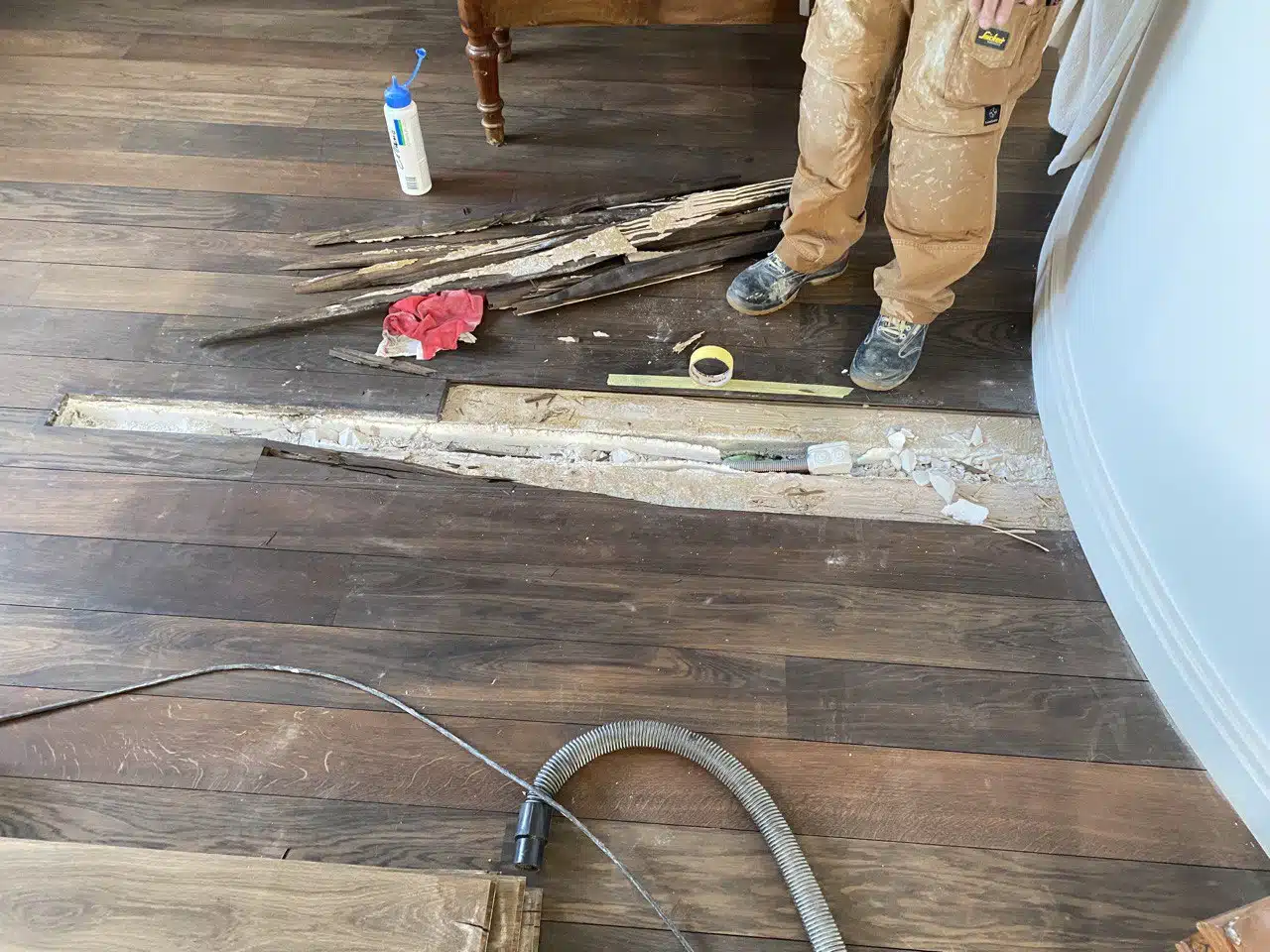 Il arrive que la rénovation ne concerne qu’une partie du parquet. C’est le cas lors d’un réaménagement d’une ou plusieurs pièces nécessitant un prolongement ou une reprise du sol, mais aussi à la suite de problèmes d’humidité ou d’instabilité affectant une zone précise. Cette situation est fréquente dans les maisons anciennes de caractère, notamment avec des parquets en bâton rompu ou en point de Hongrie.
